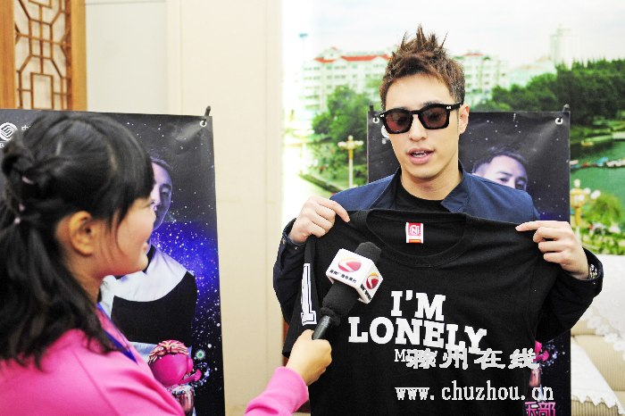 还有几天就到光棍节了,大明星的情感向来为人们关注。“今年的光棍节还要过不?”记者刚问到,这个可爱的大男孩立马接茬,“今年的光棍节和老爸老妈在上海过,就用亲情填补爱情啦!哈哈。”一边说着还一边向记者展示他的“光棍T”,“I’m lonely”(我很孤单)似乎透露着他的些许“寂寞”心情。听记者介绍说滁州到上海乘坐高铁只要一个多小时,潘玮柏一下就激动了,赶忙帮自己拉票,“滁州的朋友们,你们一定要来上海和我一起释放自己,不然这段采访就不给写了哦!”说完自己还调皮地吐了个舌头。