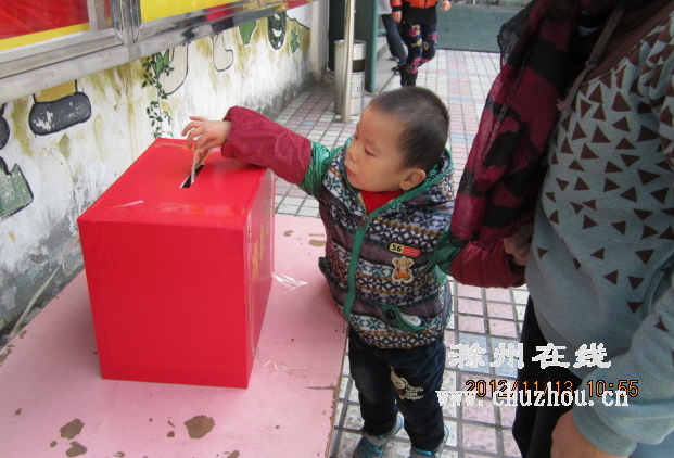 图为一位小朋友向小念祖献爱心。