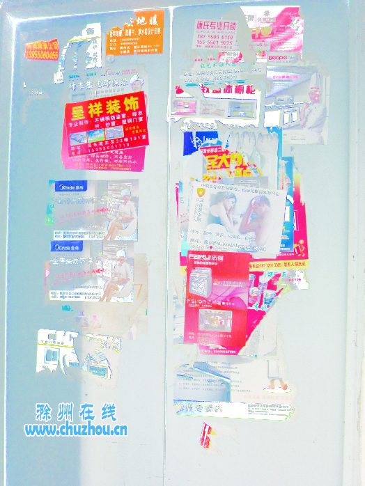 报料内容:滁城同乐东苑小区的电梯间里到处是小广告,真让人烦心。