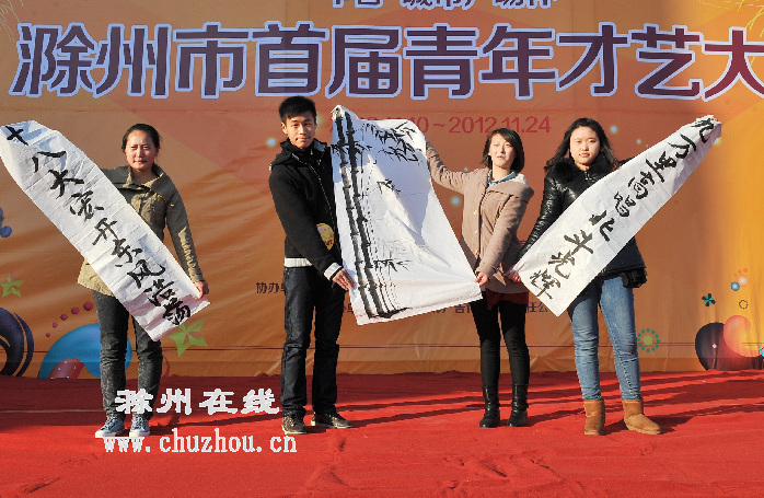 才艺大赛 青春飞扬 2012-11-15 08:00 我要评论0 扫描到手持设备 字号: 核心提示: 才艺大赛 青春飞扬 近日,滁州市举行首届青年才艺大赛,来自全市各地的青年们用各具特色的表演形式展开比拼。 11月11日,滁州市举行首届青年才艺大赛,来自全市各地的青年们以“颂扬十八大、共建美好滁州”为主题,用各具特色的表演形式展开比拼。据了解,此次才艺大赛分预赛、复赛、决赛三个阶段进行,吸引了千余名青年踊跃参与。图为参赛选手展示书画作品。记者 王家国 摄 微笑 流汗 难过 羡慕 愤怒 流泪 复制网址 打印 收藏 分享到: 0