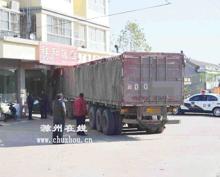 通讯员刘继明、记者包增光核实报道:当天早上8时许,来安县水口镇居民张某,正在自家饭店里打扫卫生,张罗着准备迎接顾客。突然,“嘭”地一声巨响,将张某吓了个激灵。扭头看去,一辆巨大的红色半挂货车,已经撞在饭店柱子上;车头严重变形,玻璃、瓷砖等碎片散落一地。让张某觉得蹊跷的是,她竟然发现大货车上没有驾驶员。