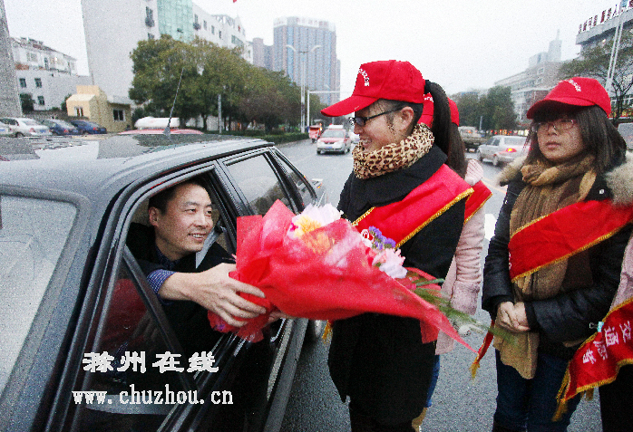 核心提示: 鲜花献给文明交通市民 11月25日,滁州市交警部门开展“文明交通我最美”暨寻找文明交通市民活动。活动旨在鼓励文明交通行为,倡导全社会的良好风尚。