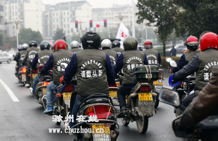 随后,30名身着“请戴头盔”马甲的摩托车骑手们,沿滁城凤凰路、南谯路、清流路、西涧路、琅琊路等主干道,大张旗鼓宣传文明驾车。100多名驾校学员和大学生志愿者,走上街头劝导“坚持文明、摈弃陋习”。
