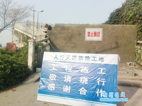 3日凌晨起,桥两端已用水泥、砖块砌起了围墙,但记者在现场期间,仍有一些不知情的市民想从天桥通行,被工作人员现场劝离。“由于该桥位于铁路上方,目前已破除部分设施,不具备安全通行的条件,希望市民从明光路大桥绕行。”该负责人提醒道。