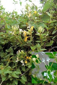 金银花 2012-12-05 01:32 我要评论0 扫描到手持设备 字号: 忍冬科忍冬属,多年生半常绿缠绕木质藤本,春夏开花不断,先白后黄,黄白相映,秋叶常为紫红色,为色香兼具、花叶皆美的蔓性藤本。喜阳,耐阴,耐寒,适应性强,适于在林下、林缘等处作地被,也可绿化矮墙、缠绕花架等,老桩还可作盆景。 微笑 流汗 难过 羡慕 愤怒 流泪 责任编辑:罗亚培 复制网址 打印 收藏 分享到: 0