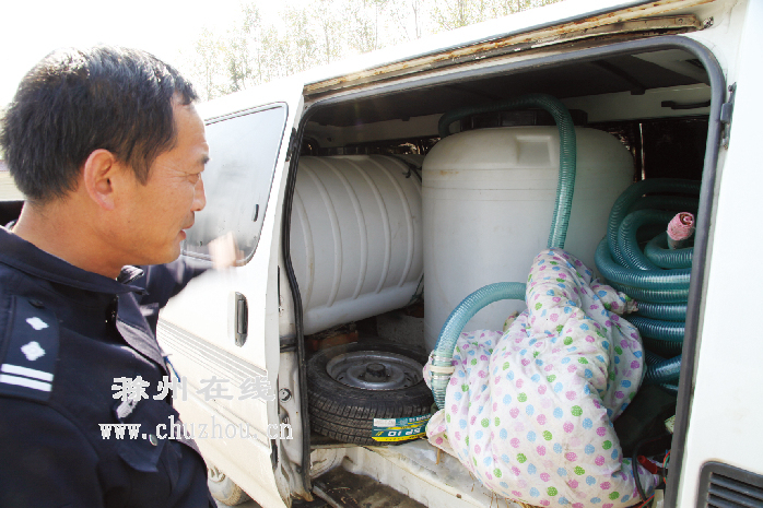 种种迹象,让民警很快联想到一桩柴油盗窃案。10月18日,凤阳县一家加油站,两名男子开着一辆无牌白色面包车,用长约100米、直径6公分的塑料软管,插入储油罐一圆孔内,将2000公升柴油抽盗走。