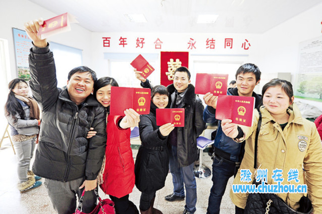昨日上午,市琅琊区民政局婚姻登记处热闹非凡,新人扎堆选择在这天登记结婚。