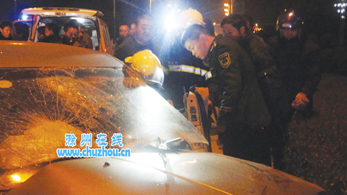 本网讯12月12日晚上7时许,天长市经五路附近,一辆崭新的小轿车撞向路边的台阶,驾驶员被困车内。天长市消防大队接到报警后出动抢险救援车一辆、7名指战员火速赶赴现场营救。