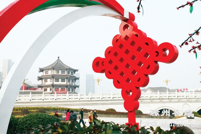 12月25日,在南湖保生桥东侧的广场上,市民在观看雕塑。由市重点局负责的中科友谊纪念碑工程目前正在进行后期绿化、亮化等工作,其主体工程由象征着科威特国旗的黑色地面,绿、白、红三根“彩带”和寓意深刻、具有浓郁的美好祝福的中国结造型两部分组成。中科友谊纪念碑为美好新滁城再添新景。