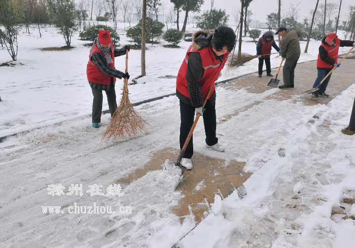 核心提示: 滁州:公园清雪保通行 因近日我市普降小到中雪,12月27日,滁城龙蟠河公园管理处组织40名员工开展清除积雪工作。