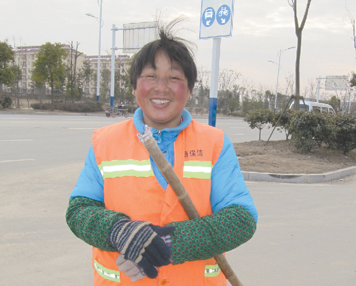 昨日上午,记者来到琅琊新区宝山路,见到了正在清扫街面的金恒林。用围巾包裹严实的是一张皮肤黝黑的脸,她手上拿着大扫帚忙碌着。当记者说明来意后,金恒林露出了温暖的笑容。