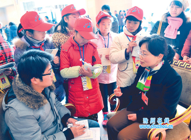 头戴小红帽、佩戴着醒目的“记者证”,1月4日上午,滁州日报社小记者团6名小记者怀着既紧张又兴奋的心情来到“两会”报到现场,就他们所关心的问题采访了市政协委员。第一次和“两会”亲密接触,面对政协委员,小记者们毫不怯场,赢得了委员们的好评。采访现场,小记者们就“读书月”活动和家政服务行业规范化的两个提案对委员进行了深入的采访。“通过这次采访,我知道了什么是两会,既开阔了视野,又增强了交流能力,收获真不小。”