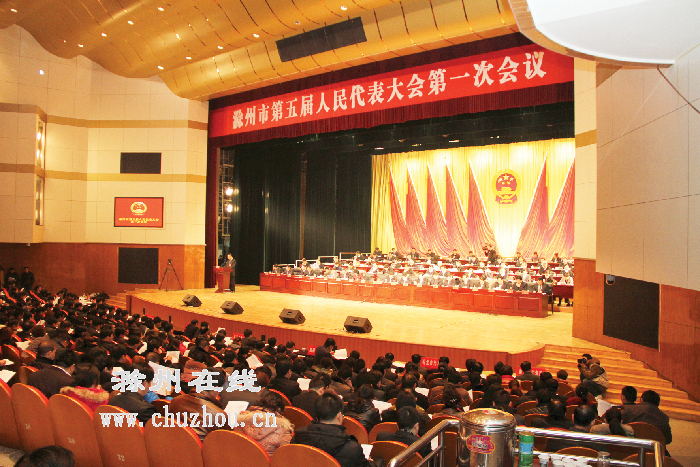 大会会场气氛热烈、庄重。主席台后方帷幕中央,鲜艳的红旗簇拥着庄严的国徽。主席台正对面的巨幅标语分外醒目:深入贯彻党的十八大精神,凝心聚力,开拓进取,为全面建成小康滁州而努力奋斗。