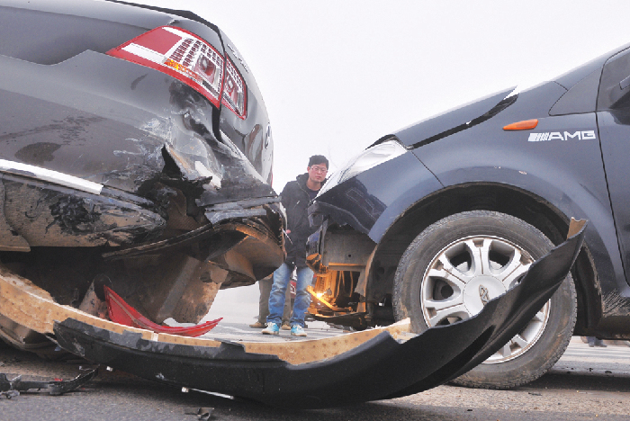 8点35分,中都大道银花小区门口,能见度不足50米。