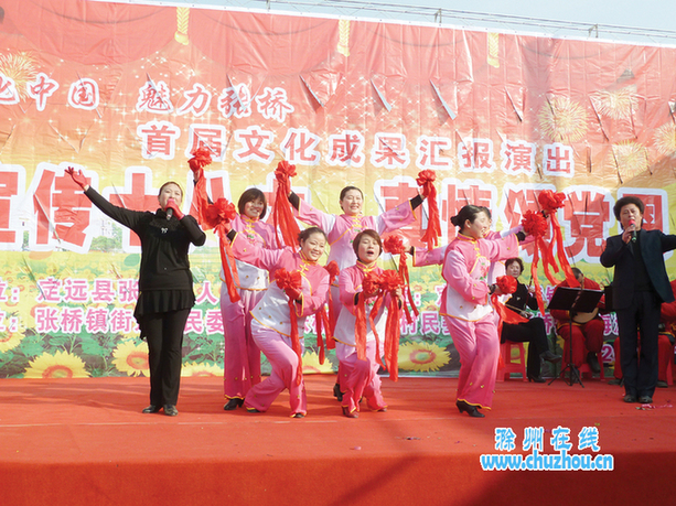 定远县张桥镇创新模式,将宣传“十八大”精神与开展文艺活动相结合,依托文化活动载体,组织开展丰富多彩的文化活动,以实际行动宣传贯彻“十八大”精神。