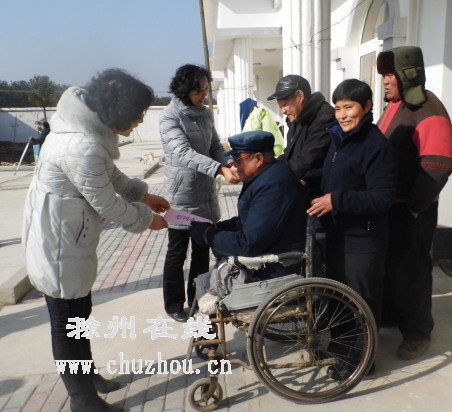 滁州明光:为麻风病患者献爱心 2013-01-21 08:00 袁松树 通讯员 罗时红 张子国 我要评论0 扫描到手持设备 字号: 1月19日,在第60届“世界麻风病防治日”暨第26届“中国麻风节”来临之际,滁州市及各县(市、区)卫生、民政、红十字会、残联、疾控中心代表深入明光市麻风村,为麻风病患者送去温暖。图为各界代表向麻风病患者送上慰问金。 微笑 流汗 难过 羡慕 愤怒 流泪 复制网址 打印 收藏 分享到: 0