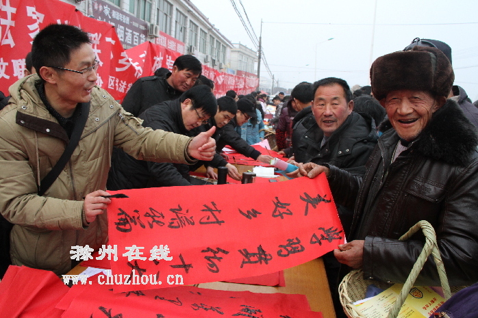 滁州南谯:迎新春送文化下乡 2013-01-25 08:00 孙桂素 我要评论0 扫描到手持设备 字号: 1月24日,市书法家正在给赶集的农民免费写春联。当日,由滁州市文联、滁州市书法家协会、南谯区区委宣传部主办,南谯区书法家协会承办的“迎新春送文化下乡”活动在南谯区施集乡举行,为山区农民提供农技、卫生及法律方面的服务。 微笑 流汗 难过 羡慕 愤怒 流泪 复制网址 打印 收藏 分享到: 0