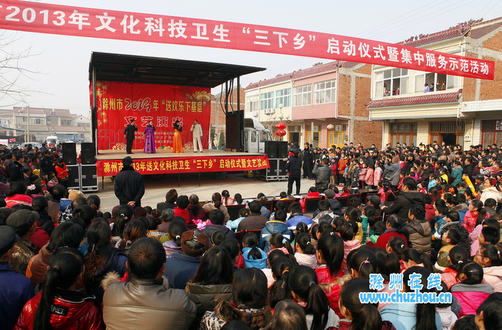 1月29日,市委、市政府组织开展的“文化科技卫生三下乡”活动在定远县藕塘镇隆重举行。市、县宣传、文化、卫生、计生等16个单位的120多名工作人员在文艺演出现场设台开展了宣传及咨询活动,现场捐款2万元和价值3万元的文化产品,散发宣传资料2万多份;市文联组织书画家为群众义务书写春联1000多份,卫生人员现场为群众义诊200多人次,老区群众享受到了丰盛的文化科技卫生大餐。