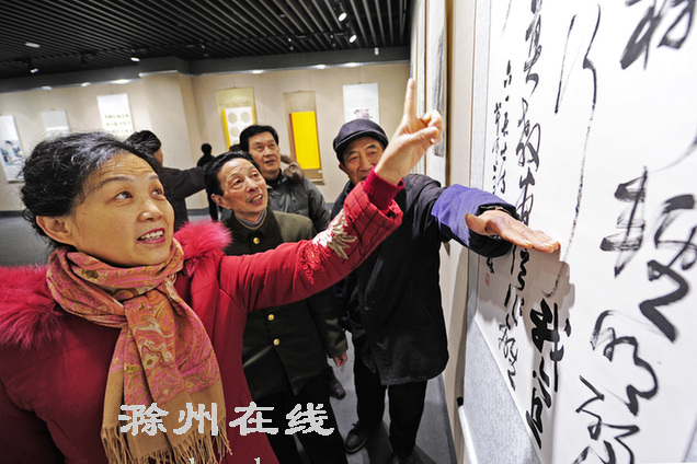 此次书画展由市文联主办,市美术家协会、书法家协会承办,共展出来自全国各地书画名家和我市部分著名书画家创作的近百幅作品。展览时间从2月5日至2月7日,感兴趣的市民可前往参观。图为观众在参观书画展。
