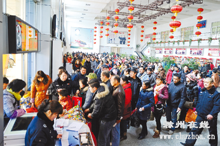 公路旅客急剧爆满,铁路客运也很“壮观”。昨天上午10点,记者在滁州北站售票大厅看见,等候买票的旅客已挤满了整个大厅,车站工作人员及辖区客运警组正在努力维持购票区秩序。“自12日起,来站购票、乘车的旅客便开始剧增,车站日均接待旅客近万人,但由于我们站运力有限,每天只有四千余人能买到车票。”滁州北站一负责人在采访中告诉记者,“截至目前,我们站的北上票额较为充足,但南下运能已全面吃紧,许多车票在预售阶段便已售空,旅客基本无法买到第二天的车票。”