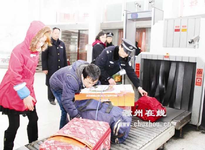 核心提示: 滁州北站加强安检保安全 随着春节返程客流高峰的到来,滁州北站全员上岗,对进站旅客宣讲安全常识,逐一检查旅客携带的物品,以确保旅客出行安全。