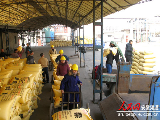 人民网讯 2月20日,来自临泉等地的客商正在安徽泉盛化工有限公司仓库购买碳铵、尿素等农业生产用肥。