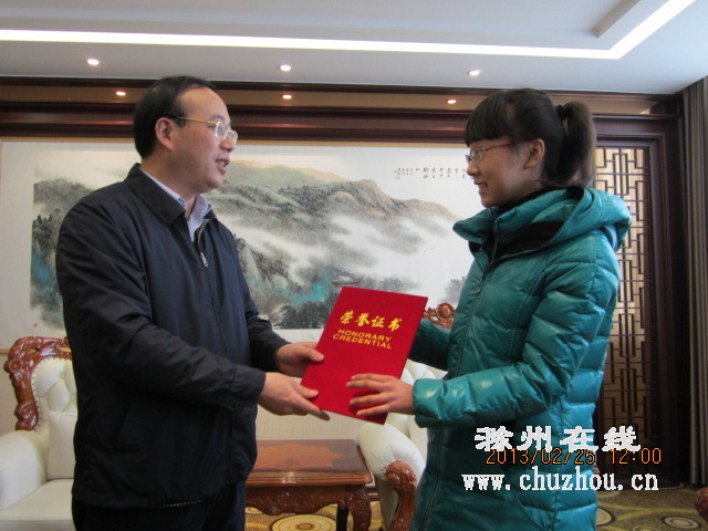 昨天上午课间时间,来安县第三中学初三年级李欣然同学,突然被班主任汤老师叫到办公室。汤老师兴冲冲地告诉她:“马上去滁州,市长今天亲自颁奖。”听到这话,李欣然激动不已,感觉“好突然”。