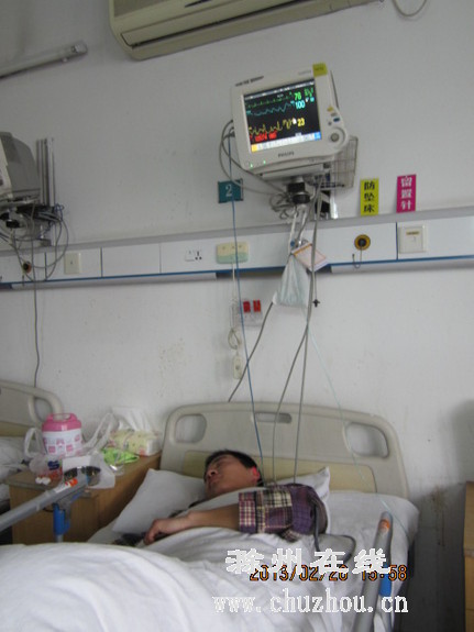 昨天下午16时30分,记者赶到滁州市第二人民医院,发现周金在ICU病房接受治疗,他的身体非常虚弱,但神志较为清醒。
