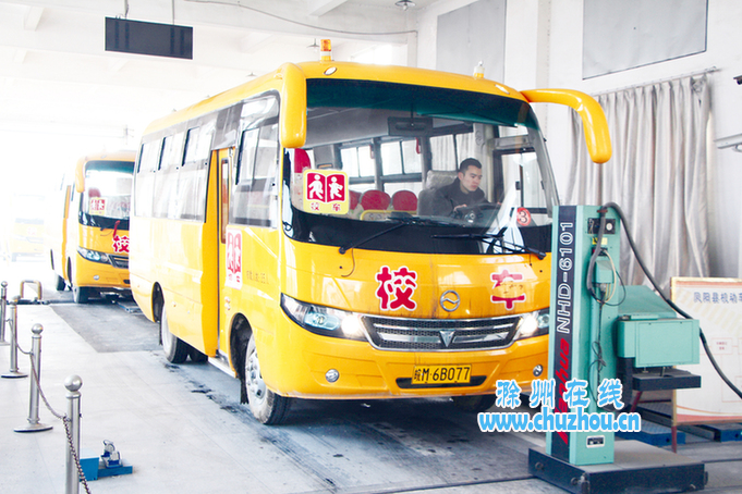 本网讯 近日上午,凤阳县55辆营运校车排着整齐的队伍开到车辆检测站,进行全面检测,确保在2月25日开学时安全运行。