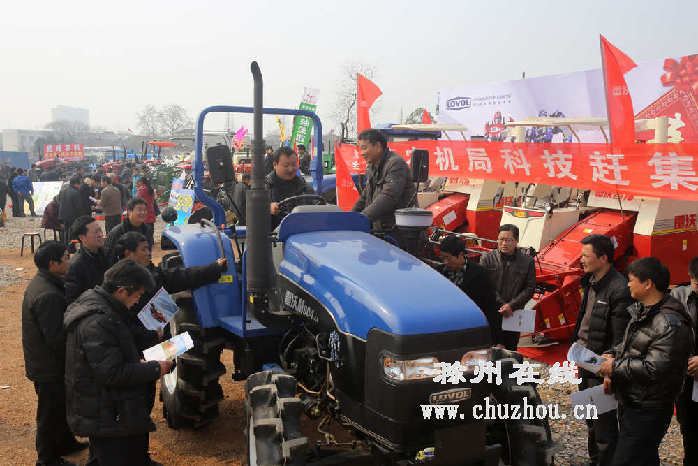 2月25日,在全椒县传统走太平民俗文化活动农机推广现场,许多农民在选购农机。进入春季,市农机部门组织各县(市、区)农机销售、生产、农机技术推广服务单位人员,赶农村集市宣传新政策,推广新农机,为农村专业合作社、种粮大户购机提供优惠优质服务和技术指导,服务农民春耕备耕。李晓村摄