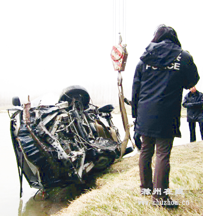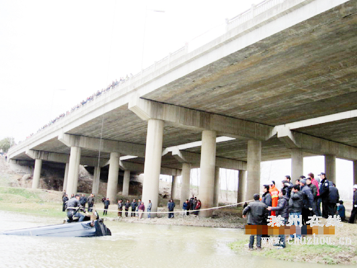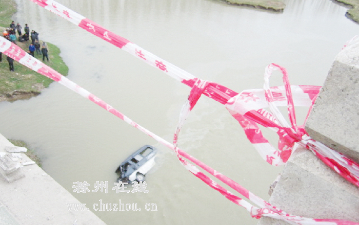 3月1日下午13时许,滁城世纪大道三官路口东侧清流河大桥,一辆面包车失控越过桥墩,冲破坚实的大桥护栏,翻入湍急的河水中,仅露出驾驶室侧面一角。