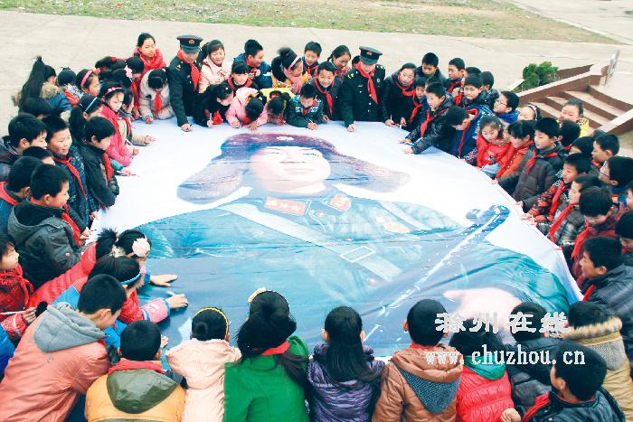 今天是学雷锋日,南京军区某炮兵团的解放军战士组织“学雷锋”小组日前来到驻地滁州市东风小学,开展“弘扬雷锋精神,争做雷锋传人”活动。解放军战士为小学生们讲雷锋故事,并与小学生们一起签名,在雷锋像前集体宣誓。通讯员郑远见摄