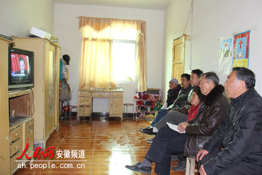 人民网凤阳3月6日电 3月5日上午,安徽小岗村大包干带头人关友江、严金昌与家人一起,在严金昌家集体收看温家宝总理所作的政府工作报告。每年“两会”,大包干带头人都会聚集在一起观看。