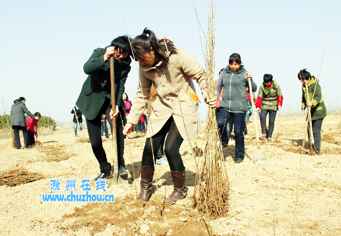 3月6日,南谯区章广镇组织“好婆婆”、“好媳妇”以及爱岗敬业标兵和致富女能手们,在该镇“巾帼林”里义务植树。