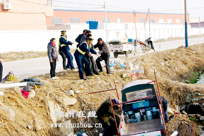 三轮摩托 掉水沟! 2013-03-08 08:00 鄂节玉/图 记者李志情/文 我要评论0 扫描到手持设备 字号: 本网讯3月4日下午,天长公路分局路政执法人员巡查至省道312下行线42K+700M处时发现,一辆装着下水管道的三轮摩托车翻在路边水沟里。 路政执法人员赶紧上前询问是否有人受伤,同时取来急救绳索系在三轮摩托车上,在现场群众的帮助下,大家将三轮摩托车拽了上来。随后,执法人员悄悄离开现场,继续进行路政巡查。 微笑 流汗 难过 羡慕 愤怒 流泪 复制网址 打印 收藏 分享到: 0