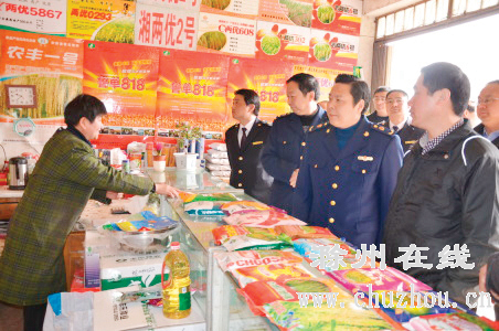 近日,定远县全面启动2013年农资打假专项治理行动,严厉打击制售假冒伪劣农业生产资料等各种坑农害农行为,确保广大农民用上放心、优质的农资产品。图为县工商局、质监局等相关部门执法人员对农资经营户进行检查。罗培宇摄