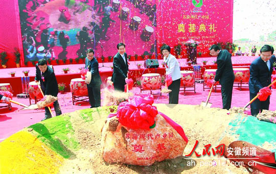 2012年4月28日,苏滁现代产业园奠基典礼在滁州市隆重举行,安徽省委书记张宝顺、省长李斌等出席并为项目奠基培土。(徐国康 摄)