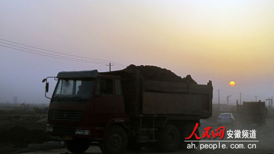 夕阳西下,苏滁现代产业园工地上依然车来车往,尘土飞扬。(杨坤 摄)