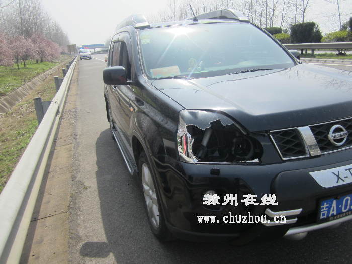 当天中午,福建司机小苏,驾驶一黑色尼桑越野车,从合肥开往吉林。途经京台高速滁州境内往蚌埠方向936Km处时,一辆在其左前方行驶的宝马车,忽然轧中一块长方形黑色钢板。这块钢板瞬间弹飞起来,在空中划了一道弧线后,“射中”小王驾驶的尼桑越野车的右前方。“从天而降”的钢块把尼桑车右前方砸个大窟窿,窟窿中裸露的钢架也被砸弯,右前灯粉碎。不仅如此,轧中钢板的宝马车右后轮,也不幸爆胎了。