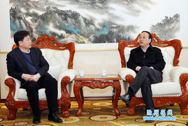本网讯3月20日,市长张祥安在滁会见了深圳远望淦拓科技有限公司董事长章乐平一行,就远望在滁投资文化产业项目事宜,进行了亲切交谈。市领导曹哨兵、金力参加会见。