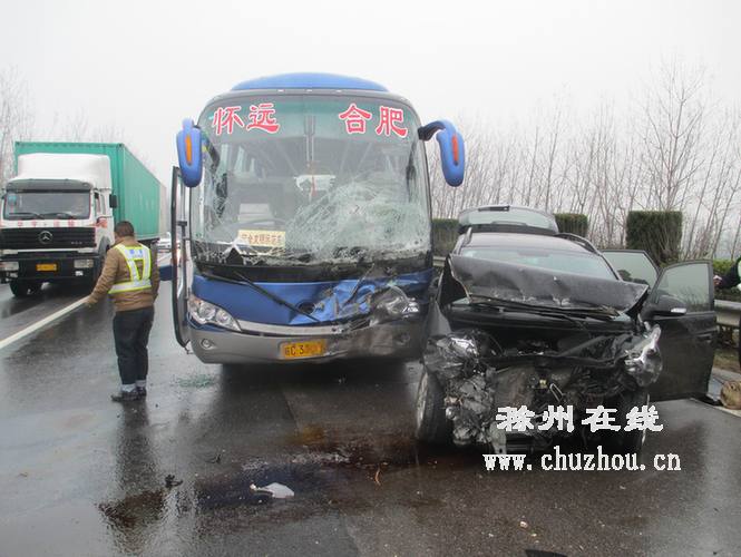 轿车与大客车发生刮擦后,竟陀螺般地旋转前行将近100米之远。日前,京台高速滁州市境内发生惊魂一幕,事故导致两车五人不同程度受伤,其中包括一名孕妇。