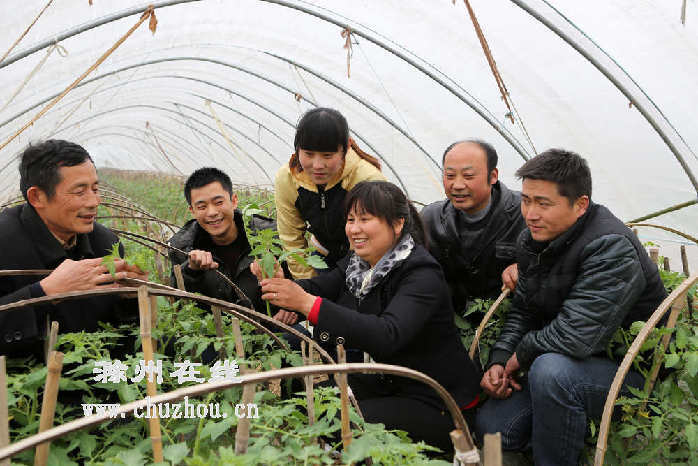3月26日,十二届全国人大代表、南谯区腰铺镇范桥村“农民女状元”胡大明在绿园蔬菜基地大棚里向村民传授育苗技术。胡大明致富不忘乡邻,近几年来用资金和技术支持一批困难户,帮扶他们调整种植结构,走出贫穷。如今,她开始向新的致富领域拓展,成为当地农民中的“经纪人”,以订单保护价收购农产品外销,闯出一片新天地。李晓村摄