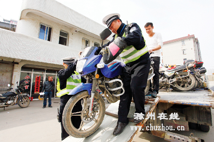 为推进国家交通管理模范城市创建工作,市交警部门自3月至8月,开展为期6个月的城区交通秩序集中整治活动,力求通过强化宣传、加强管控,使城区交通秩序明显改观。图为交警将暂扣的摩托车运入停车场。邢秀奎 卢志永摄