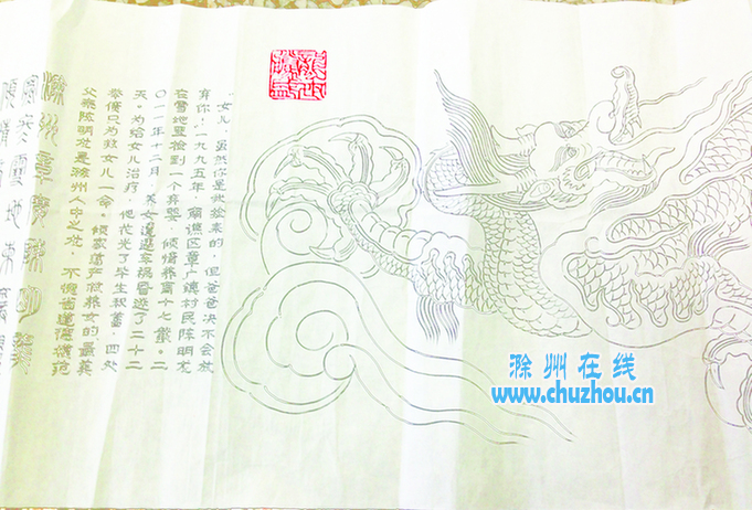 “我年纪大了,不会上网投票,特含泪创作《明中都皇故城龙吐宝珠浮雕》,以自己的微薄之力向好人致敬,希望滁州有越来越多的好人,希望好人一生平安!”感动于两位好人的无私奉献,老人在信件中写下了自己的深切情谊,并托记者将“礼物”转交给好人。