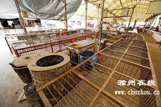 滁城凤凰菜场家禽市场装鸡的笼子已没有活鸡。