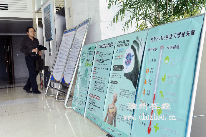 针对近期出现的H7N9禽流感病例,我市积极应对、加强科普宣传。图为市科协在市政务中心东楼大厅设置了H7N9预防科普知识宣传栏。记者计成军摄