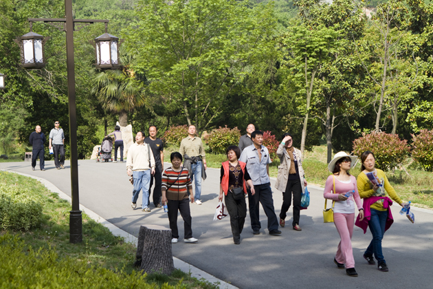 人们登山归来