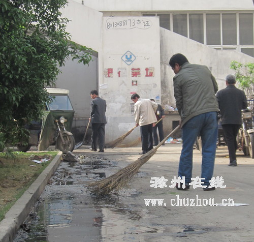 考虑到下水道漫溢的地方位于菜场后门处,银花菜场的工作人员拿着扫帚、铁锨来到现场,对污水路面进行清扫。采访中,菜场工作人员表示:“我们的义务清扫也只能解决一时的问题,希望物业和社区能想想办法彻底解决问题。”