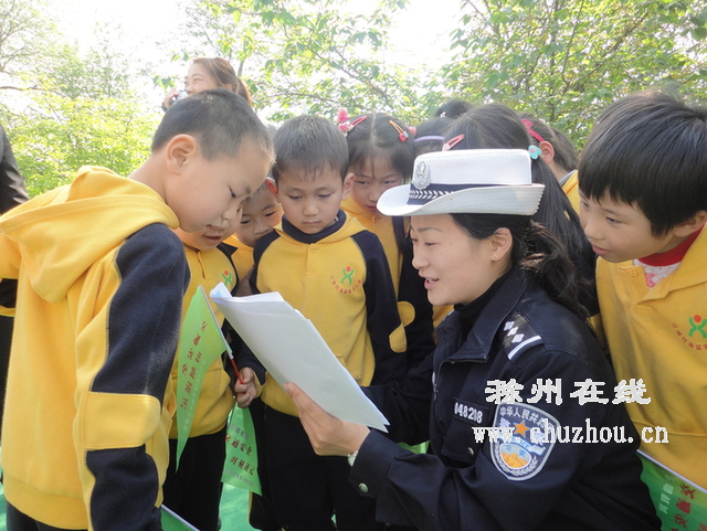 图为孩子们围拢在交警阿姨周围接受文明安全教育。