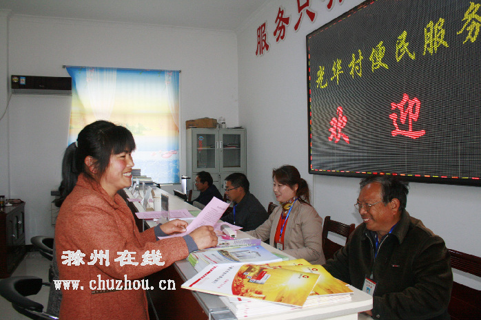 5月5日,天长市杨村镇光华村村民在该村便民服务中心办理新型农村合作医疗相关事宜。为切实解决农村群众办事难的问题,天长市紧紧围绕“便民、利民、惠民”的服务宗旨,科学设置代办事项,营造良好的便民服务环境,扎实推进村级便民服务中心建设。目前,该市已经建立了铜城镇铜北村、杨村镇光华村、秦栏镇寿昌社区、天长街道西湖社区等20个示范村级便民服务中心。陈开云摄